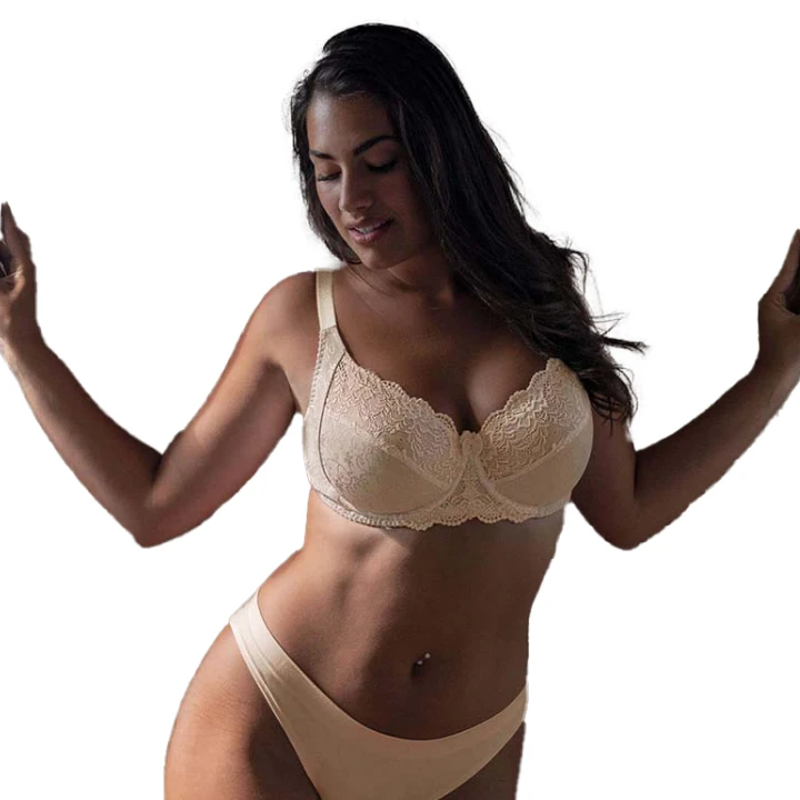 na fiszbinach. Jeden z biustonoszy ozdobiono elegancką koronką. Drugi jednolicie gładki, idealny pod obcisłą i delikatną odzież.